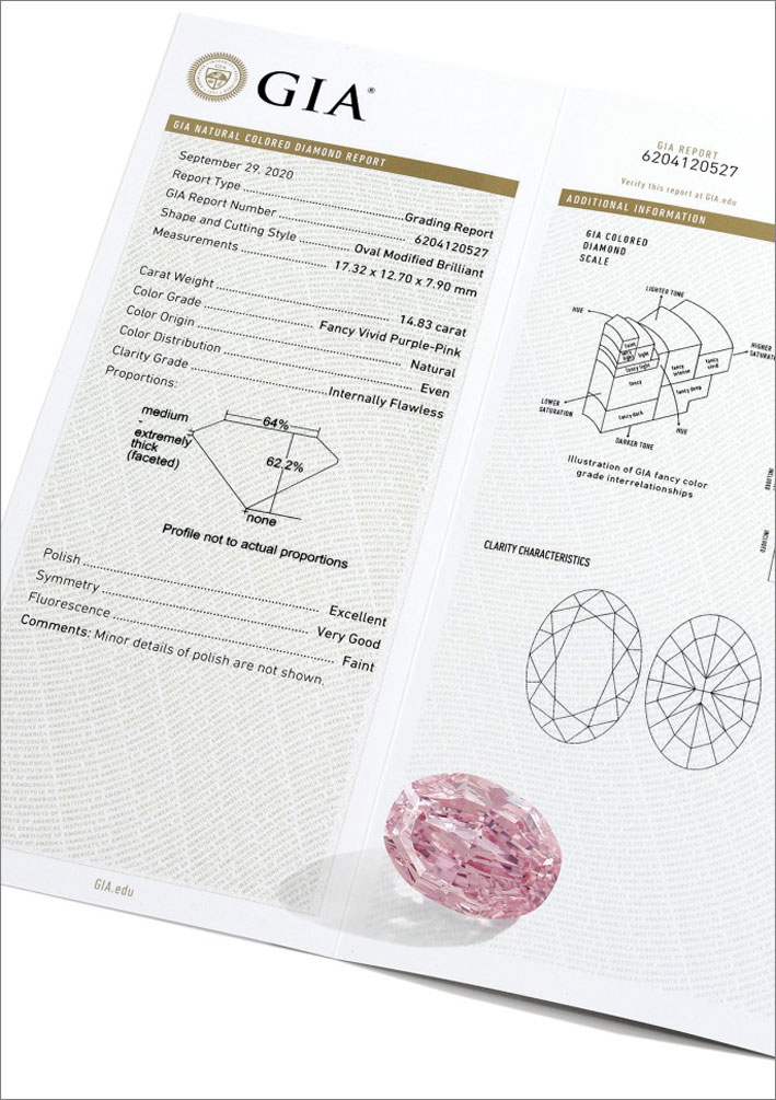 Battezzato “The Spirit of the Rose”, il diamante discende dal più grande cristallo viola-rosa vivido estratto finora da una miniera russa. La pietra grezza di 27,85 carati fu scoperta nel luglio 2017 da Alrosa, tra i principali produttori mondiali di diamanti, nel giacimento di Ebelyakh nella Repubblica di Sakha (Yakutia), nel nord-est della Russia. I maestri di taglio di Alrosa hanno impiegato un anno per trasformare la pietra nel diamante ora all’asta, scegliendo di conferirgli una forma ovale proprio per garantire la massima grandezza possibile e per far riflettere tutte le sfumature del color petalo di rosa.