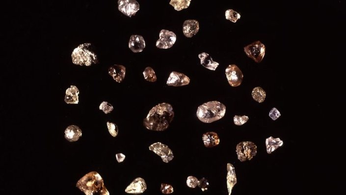 Atmosfera negli anni ha eroso il materiale espulso e lasciato i diamanti stabili e molto resistenti nel terreno; i diamanti si trovano spesso sciolti nel terreno insieme ad altre gemme semi preziose come l’ametista, agata, e diaspro.