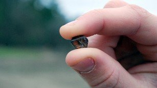 Kalel was walking along a riverbank in the Crater of Diamonds when he saw a glimmering brown stone on the ground. It was about the size of a pinto bean. He immediately knew the rock was special.