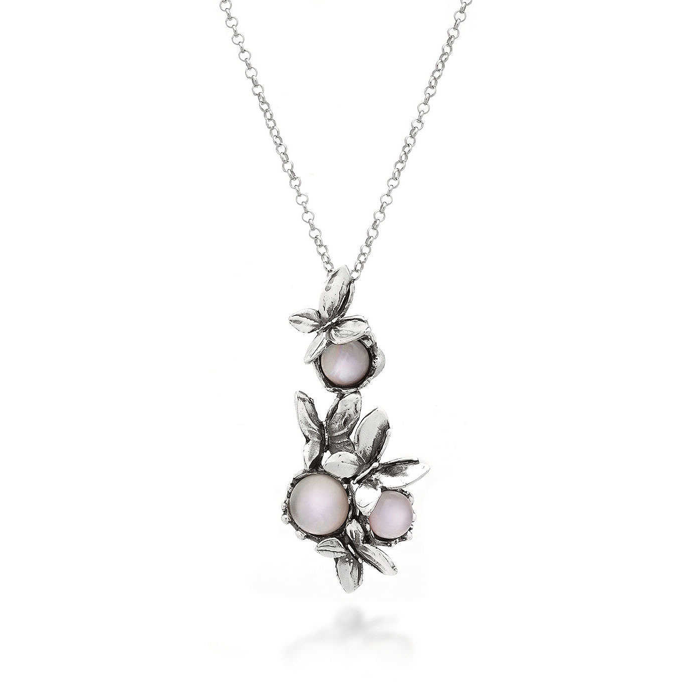 • Argento 925 e madreperla rosa doppiata con quarzo idrotermale
