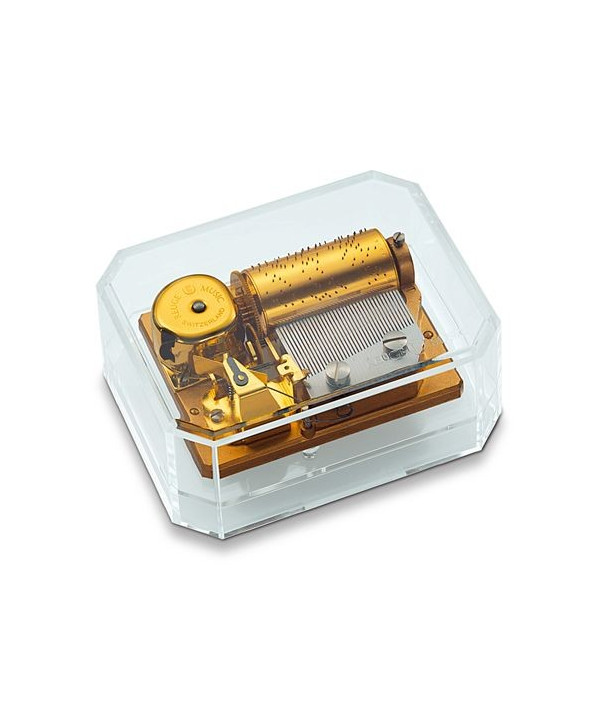 Il Carillon Reuge 36 note è un piccolo capolavoro di trasparenza e armonia. Racchiuso in una elegante teca in plexiglass cristallino, questo carillon Reuge rivela senza veli la bellezza del suo meccanismo dorato: un gioiello di precisione svizzera che unisce arte e tecnica.