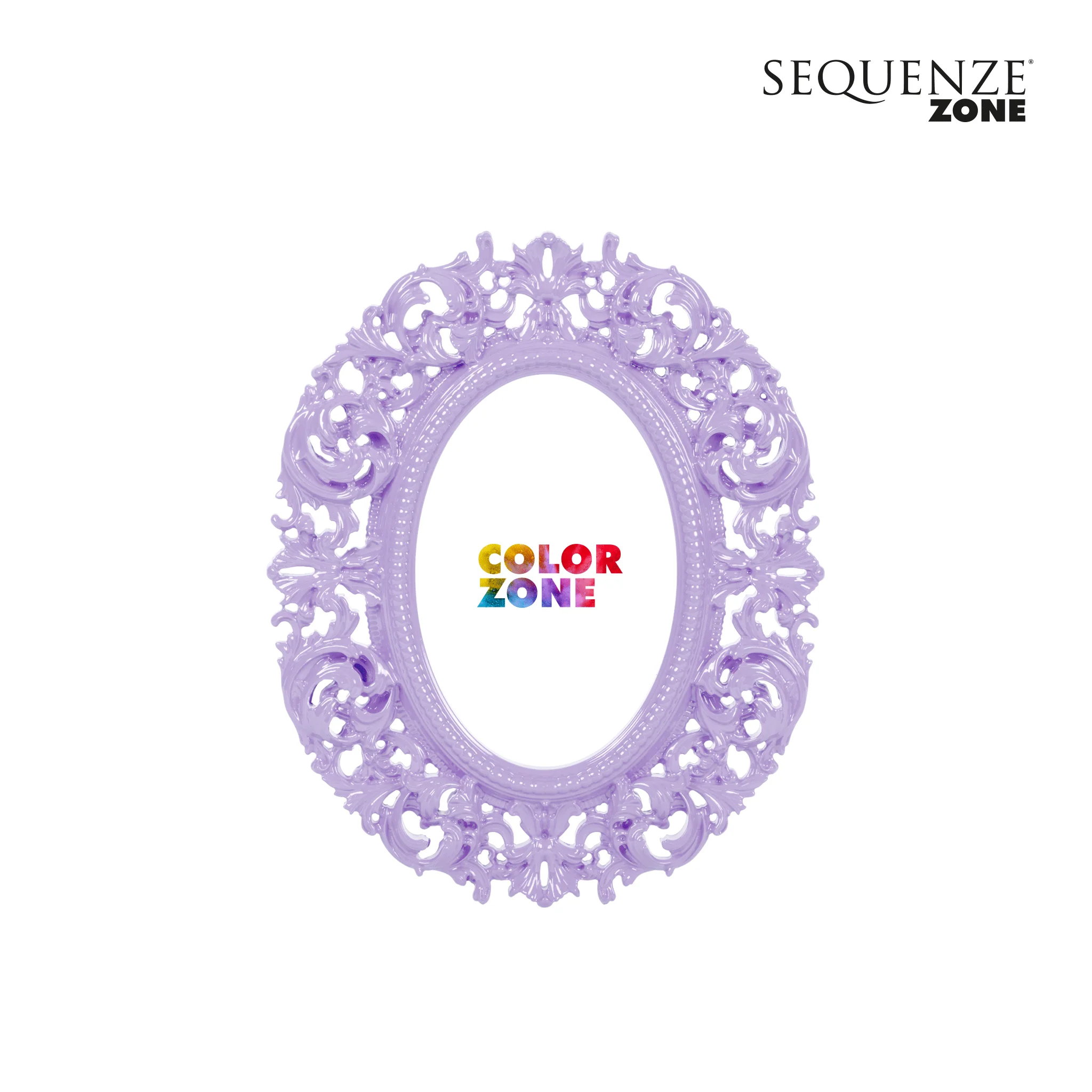 - Cornice ovale dal colore pop lilla in vetroresina.