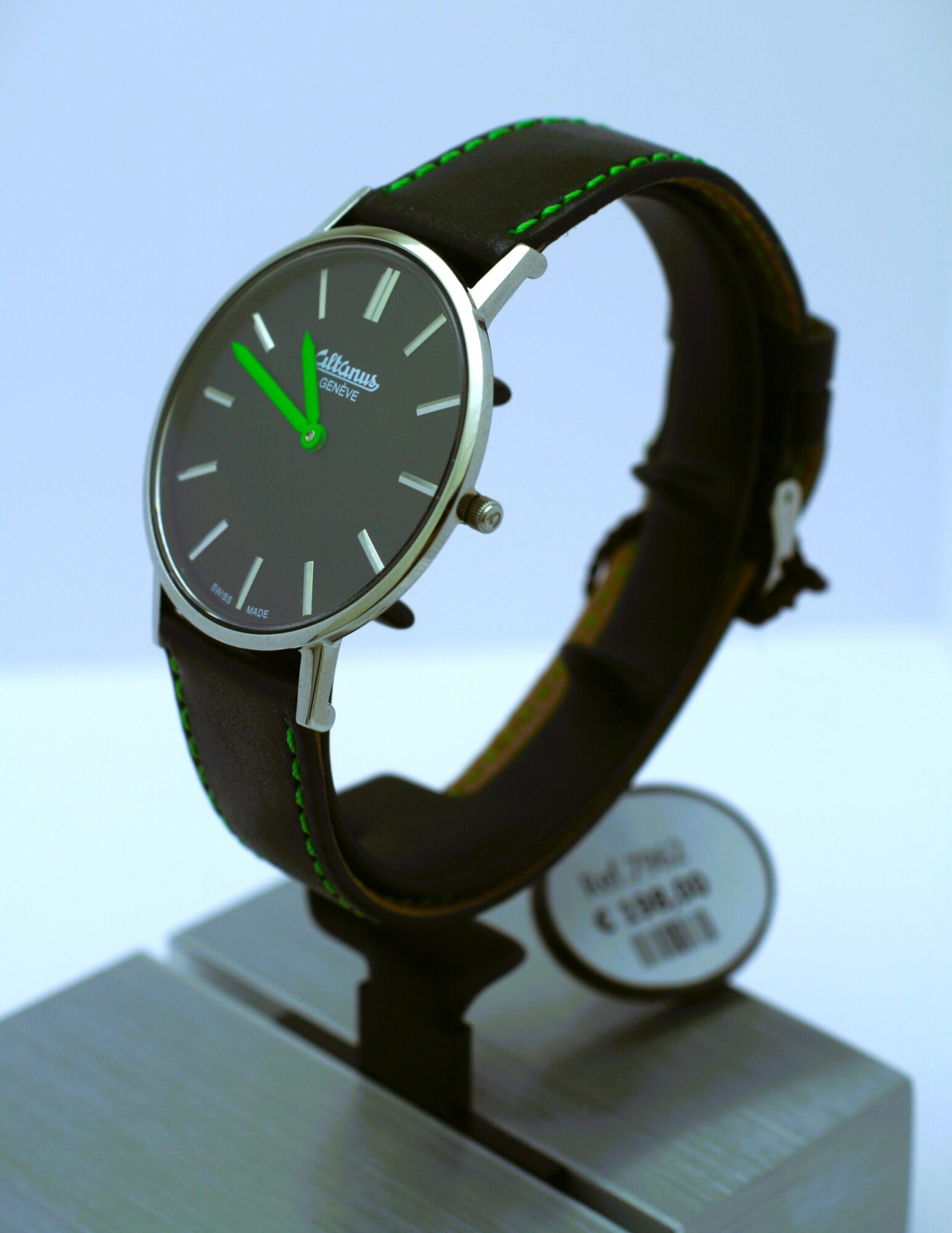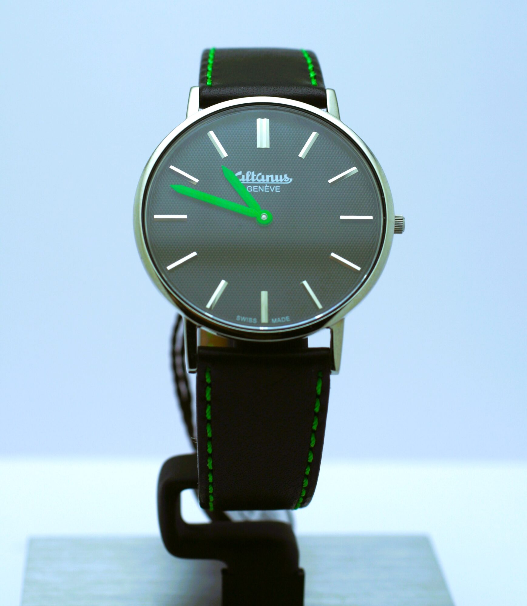 L’ Orologio Slim nero di Altanus è un segnatempo di design essenziale e raffinato, pensato per chi apprezza la pulizia delle linee e l’equilibrio estetico senza rinunciare alla qualità del movimento svizzero. Il modello Slim si distingue per la sua cassa ultra piatta e il suo look sobrio, perfetto per occasioni formali o uso quotidiano con stile. Gli unici dettagli che rendono particolare l’orologio sono le lancette verdi abbinate all’impuntura verde presente sul cinturino in pelle nera.