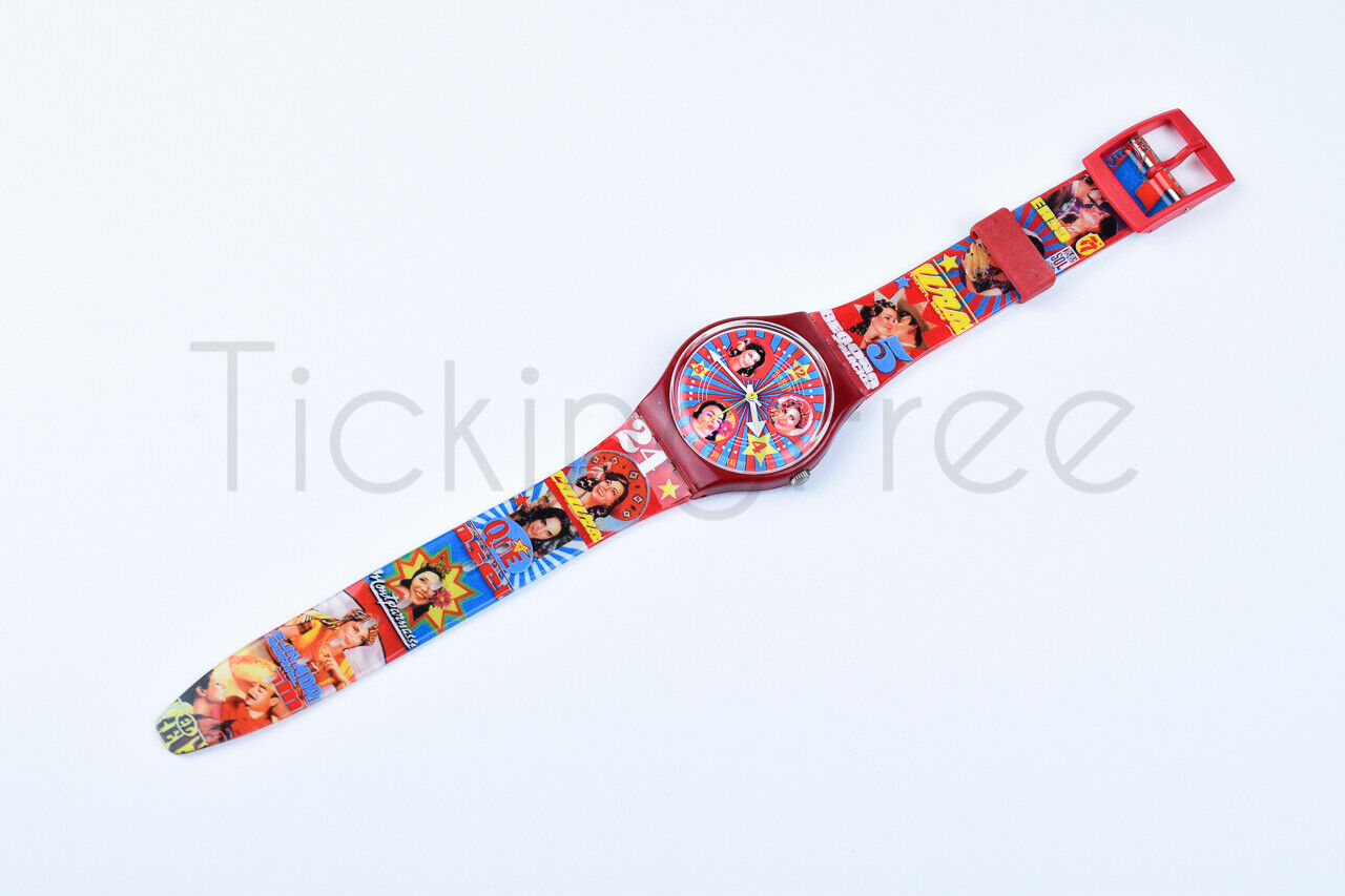 L’orologio Swatch Latinas è un orologio della collezione Gent 1997, oggi tra i pezzi più ricercati dai collezionisti. Con il suo inconfondibile cinturino rosso decorato da figure di attrici latine e le piccole stelle gialle a segnare le ore, rappresenta perfettamente lo stile pop e creativo che ha reso Swatch un’icona mondiale.
