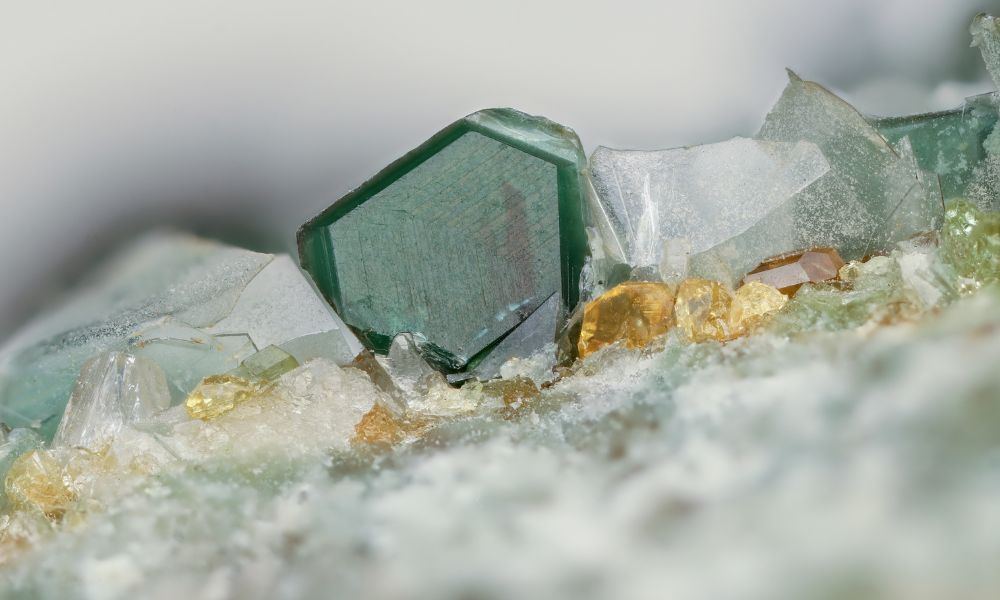 b) lo smeraldo (ipotetico) presenta diverse imperfezioni.